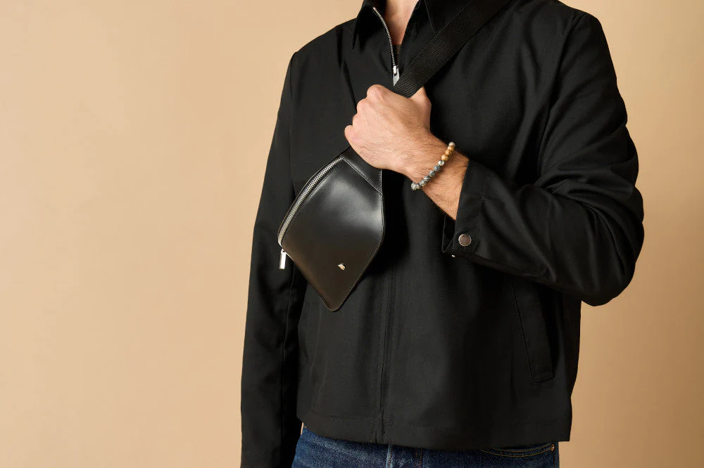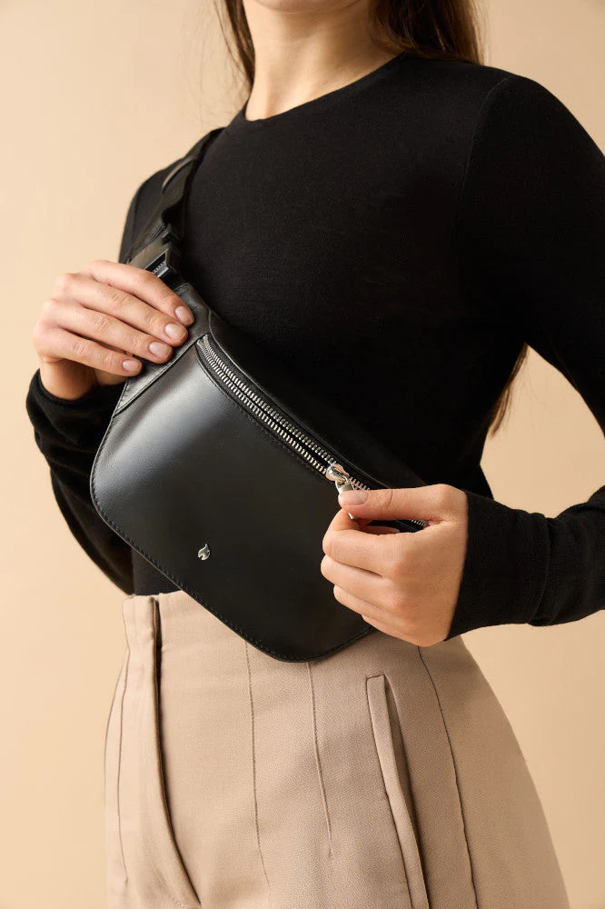 Ehtsast lehmanahast, Metallist logoga, Reguleeritav nailonrihm, Jacquard-vooder, Suurus: 36 x 16 x 6 cm, Kaal: 173 g, Värv: must, 1 eesmine suurem sahtel, 1 tagumine sahtel
