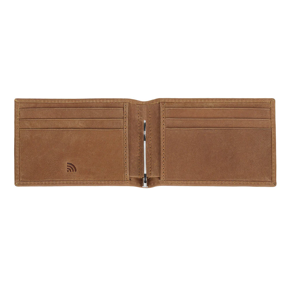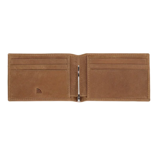 Ehtne, taimse parkimisega nahk, Integreeritud RFID-tehnoloogia, Puuvillane vooder, Suurus: 11,3 x 8,3 x 2 cm, Kaal: 57 g, Värv: pruun, 2 taskut, 6 krediitkaardipesa, 1 rahaklamber