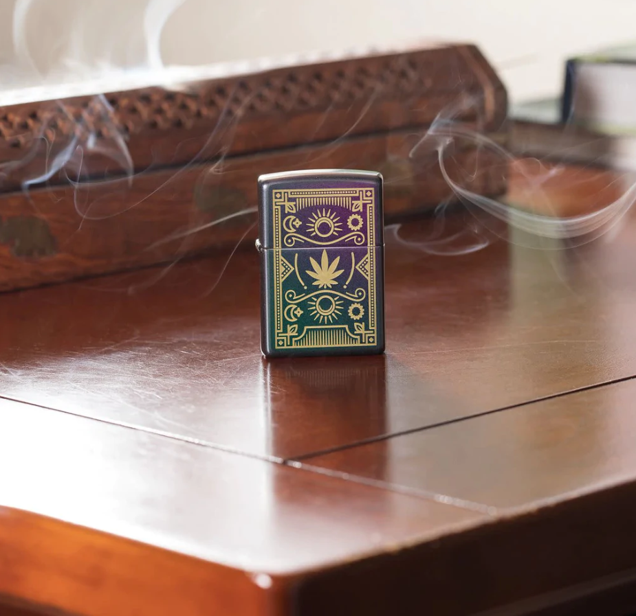 Этот дизайн свежесобранной конопли отличается реалистичным срезом, который поднимается из слоя листьев с помощью нашего процесса текстурной печати. Фиолетовый матовый светлый фон служит идеальным фоном для придания дизайну особой выразительности. Поставляется в подарочной коробке. Для оптимальной работы заправляйте зажигалку топливом Zippo.